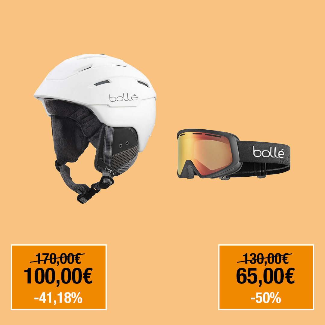Bollé "Border" Skihelme (schwarz & weiß) und Bollé "Cascade" Skibrille.