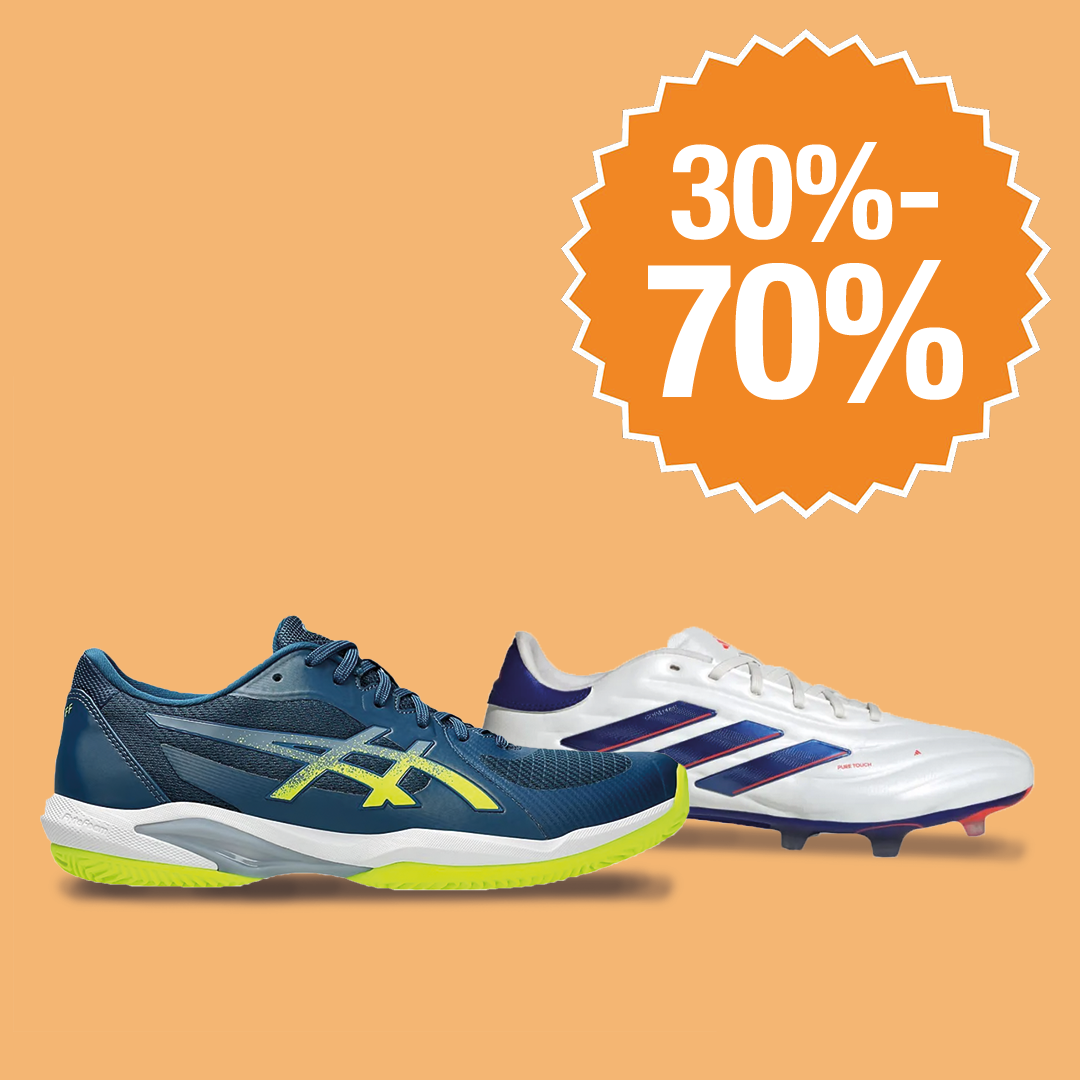 Auf ausgewählte Tennis- und Fußballschuhe im Obergeschoss.
